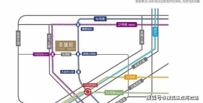 深业泰瑞府位于龙飞大道与如意路交界处,项目距离16号地铁线龙城公园站也只有700米,距离在建深惠城际大运北站约100米,预计2026年底开通。
