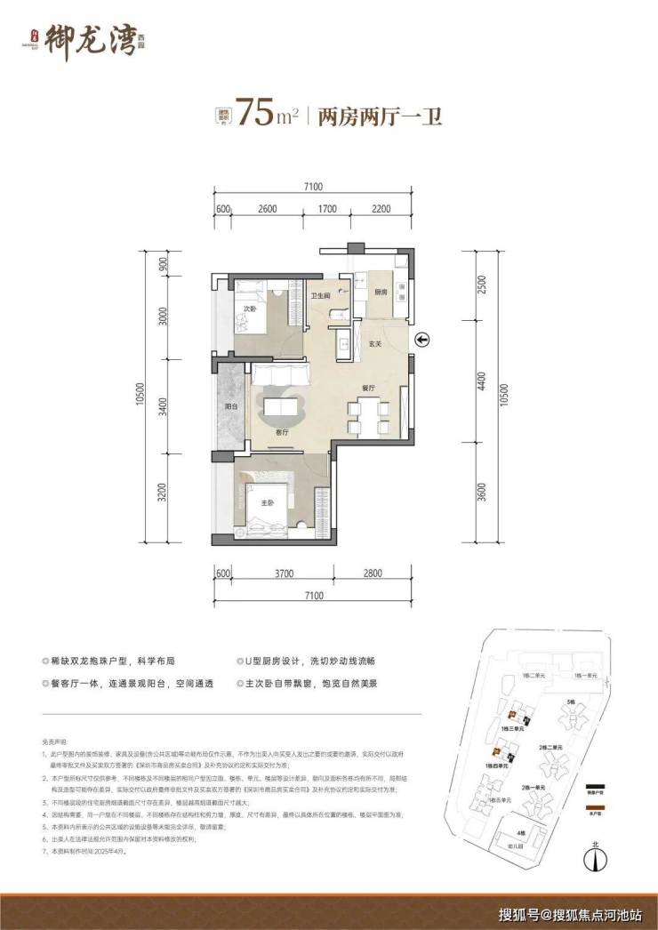 竖厅格局,LDK+B一体化,四开间朝南,主卧套房设计,U型厨房,6米长的大阳台,东南朝向。