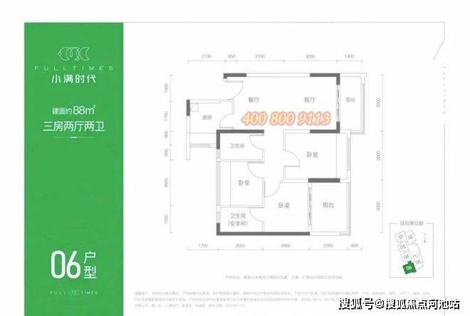 【小满时代】2梯6户,面积段是59、69、74、79平的2房和88平的3房