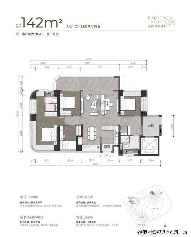 产品定位高端改善:独立电梯厅+弧形大阳台+超高使用率。户型各有亮点,设计十分用心。