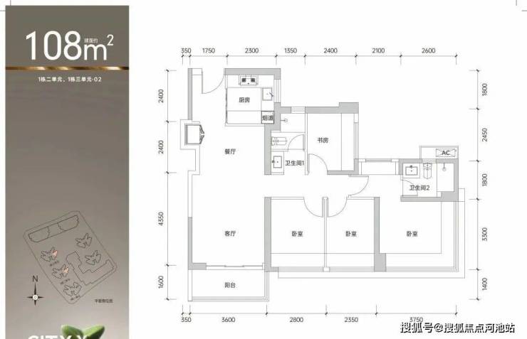 建筑面积约89㎡的3+1房2卫的01/07户型:全能型成长空间典范