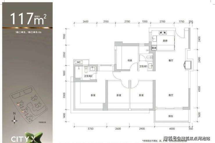 建筑面积约99㎡的3房2卫02/03/05/06户型:全南向爆款空间