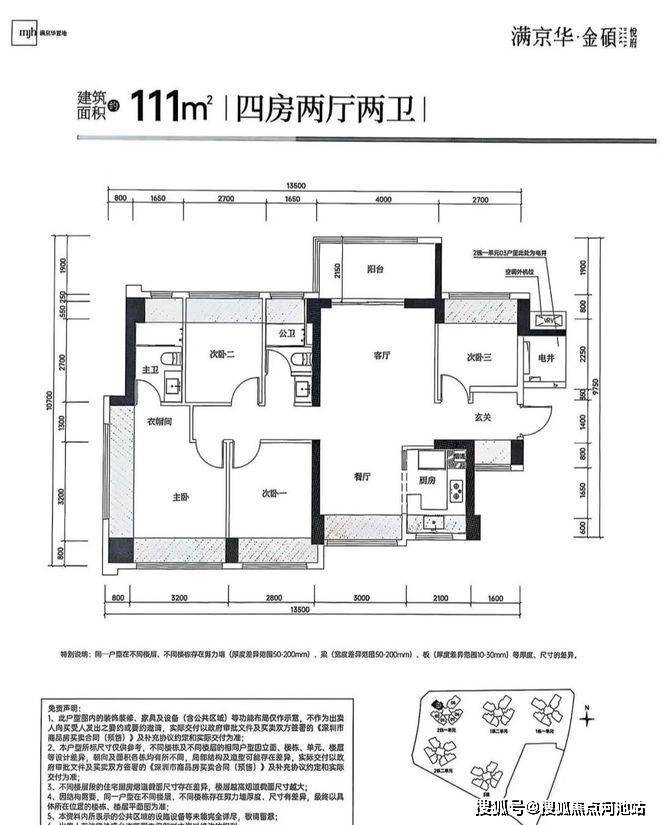 满京华金硕悦府,由深圳本土品牌开发商满京华集团开发,项目规划总占地面积约2.61万㎡,总建筑面积约21.8万㎡,计容建筑面积约15.53万㎡,容积率5.95,绿化率30.01%,共由5栋32-48层高的住宅组成,其中1栋1/2单元住宅48F,2栋1单元住宅32F,2栋2单元住宅47F,3栋住宅48F,4栋是1所幼儿园,还配建有社区菜市场。