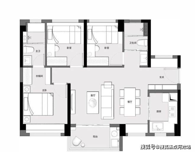 ·方正户型,通透舒居:户型方正,全明采光,科学动静分区;大面宽设计、阔绰景观阳台,将自然盛景融入日常;兼具雅致主卧套房,畅享生活的便捷私密;