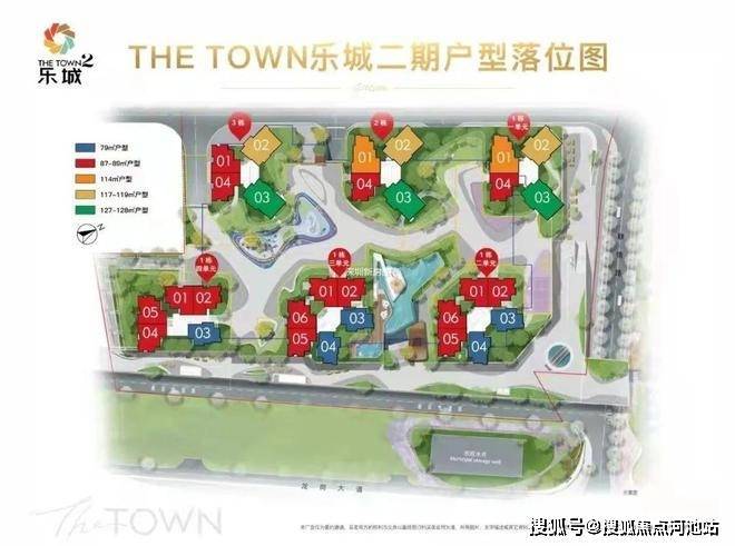 THE TOWN乐城二期项目,备案名:颐安雍悦华府,由6座塔楼住宅围合而成,其中分别为1栋一单元、二单元、三单元、四单元、2栋、3栋,套数为887户,项目以中小户型为主打,其中套内建面小于90平有701户。