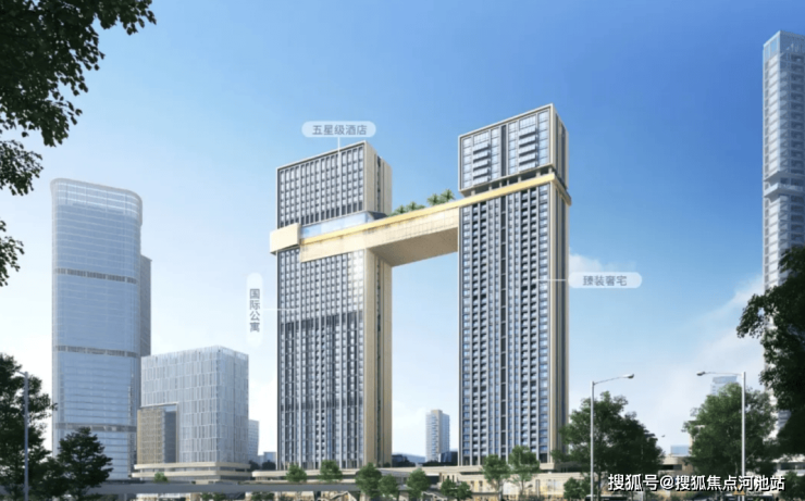 此次新品以“前海之门”为设计理念,采用双塔布局左右并立——左侧为五星级酒店及国际公寓塔楼(英迪格酒店已签约入驻),右侧为纯住宅,两栋建筑通过两层空中连廊相连。
