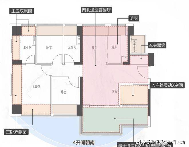 先看三组硬核指标:2梯4户——低梯户比;户户朝南——全南向设计;约100%得房率——同等面积多一房。