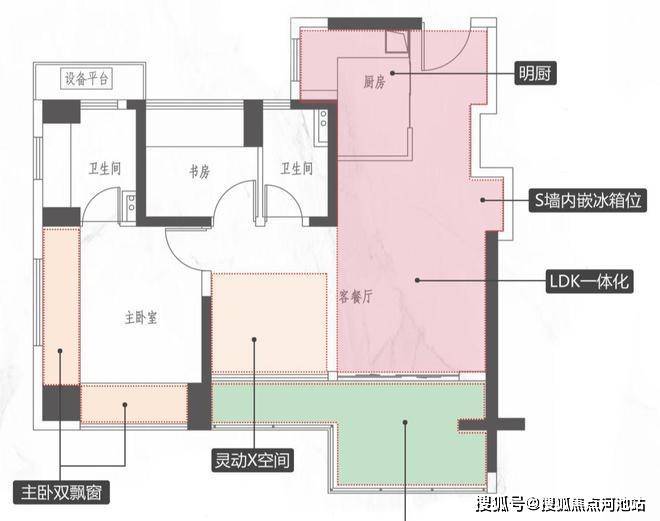 得房率直接拉到约100%,硬是在83㎡里做出了3房2卫,再加上LDK一体化+S墙内嵌冰箱位设计,空间利用率拉满。