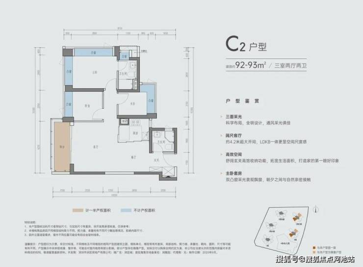 C-2户型 | 建面约92-93㎡三室两厅两卫