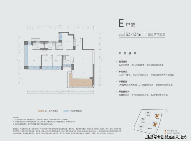 E户型 | 建面约133-134㎡四室两厅三卫