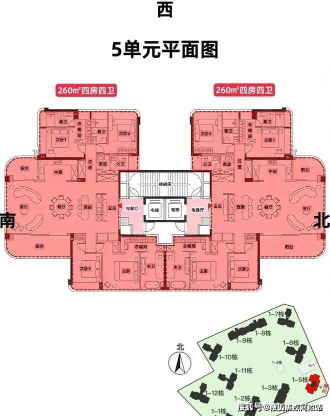 260㎡4房4卫,2梯2户,总价约4000万(单价约15.3万/㎡)