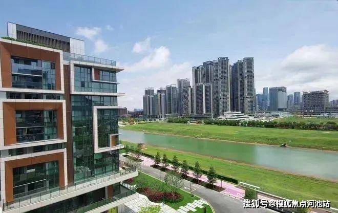 02.一线水岸+山海景观+超低容积率前海2023年新盘宜居天花板前海今年的新盘,要么是公园景观,要么是宝中+前海双界河景观,唯有前海瑧玺,拥有一线公园+水岸生态资源的同时,还能远眺山海,达到了户户看河、部分房源观山海的效果。