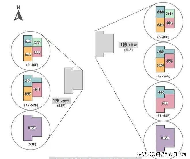 顶楼:约1050㎡整层大平层(仅3套)。