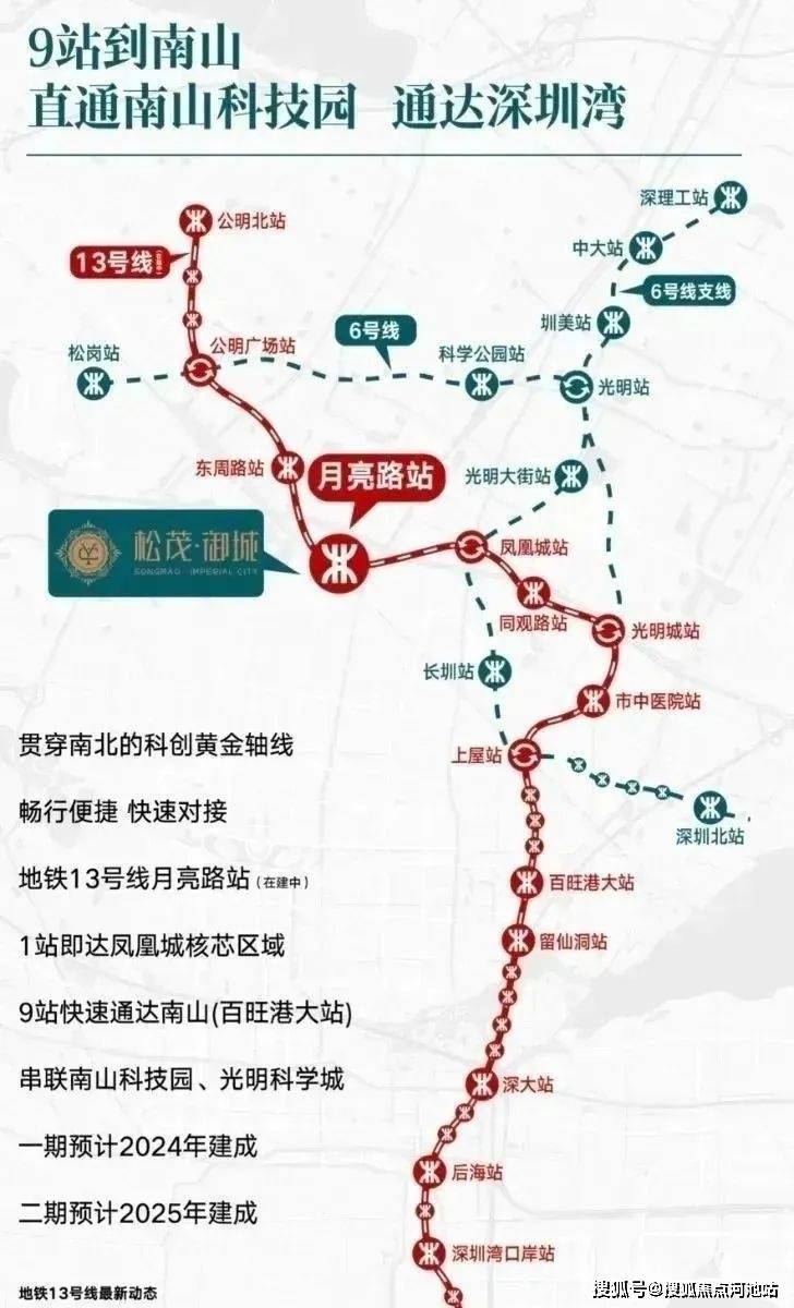 目前距离在建的13号地铁线“月亮路站”约400米,3站到光明城站,5站到石岩上屋站,计划在2025年通车运营。