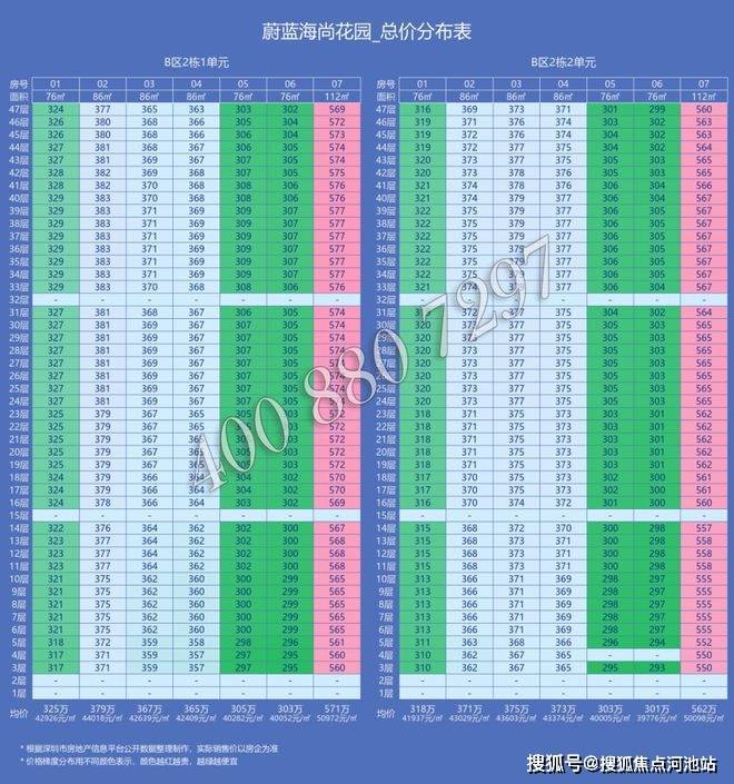 卓越前海未来城备案价格表如下