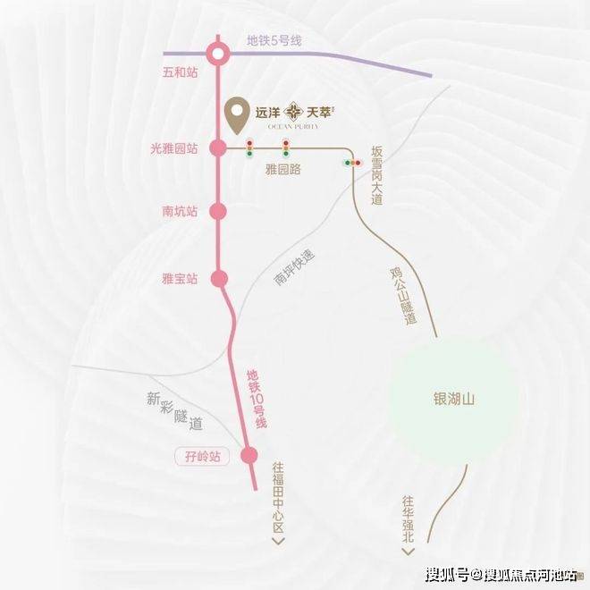 交通 配套楼下无缝连接10号线光雅园地铁站,3个站到福田岗厦,1站到五和转乘5号线2站到深圳北,半小小时内可直达前海,西丽,布吉等深圳中心区域。