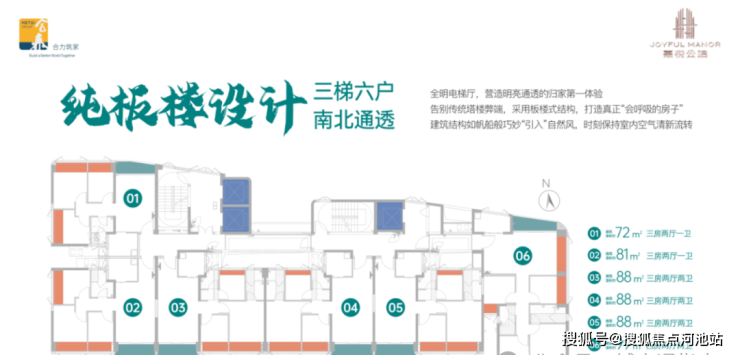 户型区间:72-99㎡三至四房,精装交付,实用率领先市场