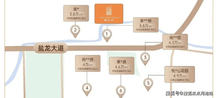 价值高地 价格洼地:距项目约1km内的二手房,政府指导价4-4.9万/㎡,价格倒挂1-2万/㎡,总价套均倒挂80-200万。
