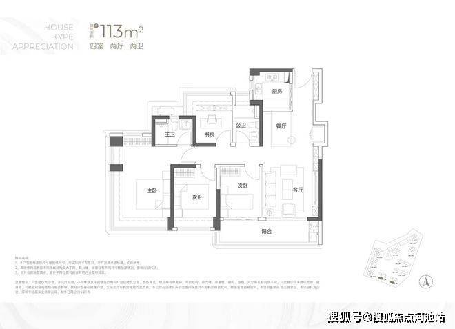 113㎡的4房2厅2卫:户型分布于5/6栋,南向,竖厅户型看山景。