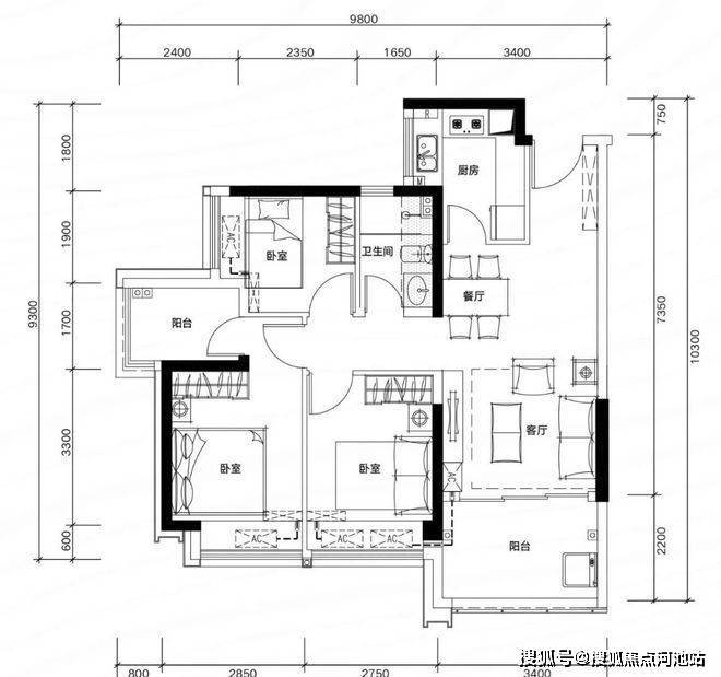 89㎡四房两卫,同样的面积,多一间房。两孩家庭也能3代同堂。