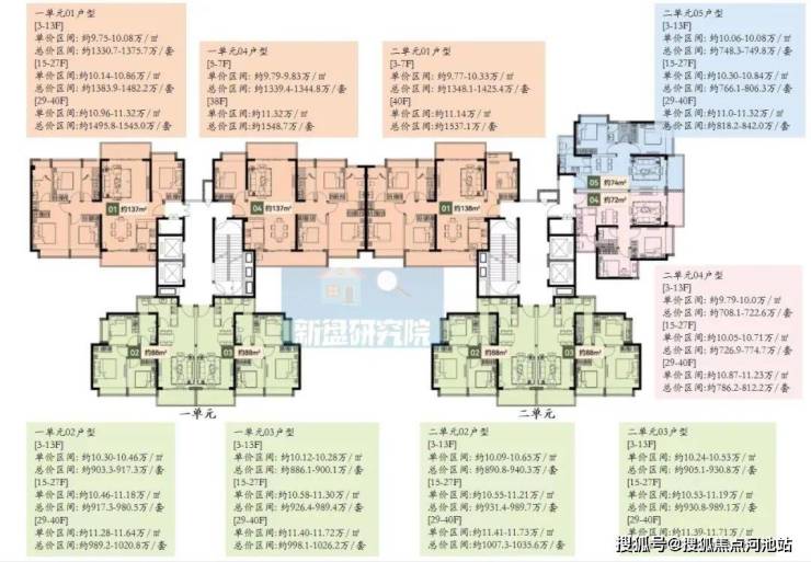 2栋B座一单元01、04户型、2栋B座二单元01户型:面积约为137-138㎡的4房2厅2卫;