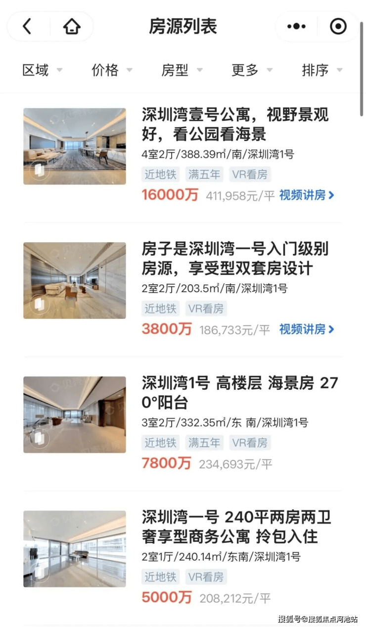 而在市场下行周期,深圳湾壹号相对来说价格依然坚挺。近期挂牌的13套房源,均价为26万/㎡。其中,价格最贵的一套388㎡户型报价高达41万/㎡,最低的一套170㎡户型报价约17.5万/㎡。而整个10月份深圳湾板块的二手房成交均价仅15.46万元/㎡。