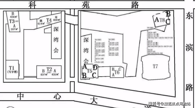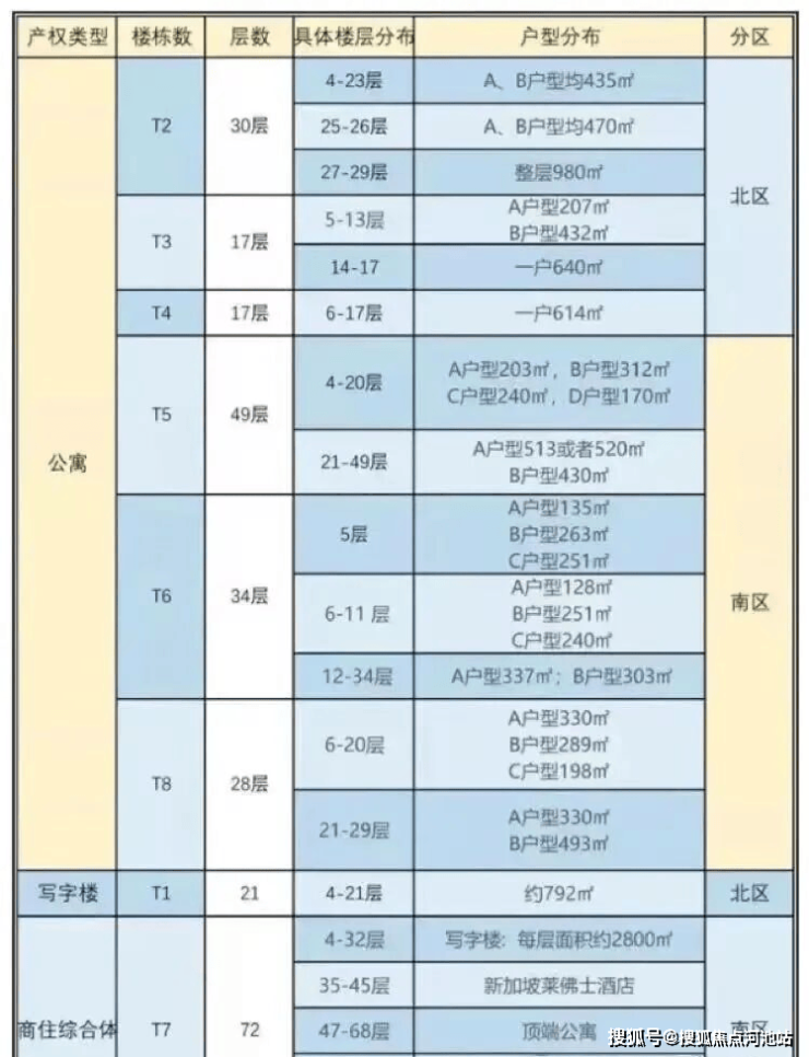南区分为:T5、T6、T8公寓,T7为环球商务中心。