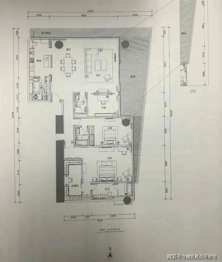 建面约312.81㎡户型:3房(两个套间+书房)2厅3卫+保姆套间。