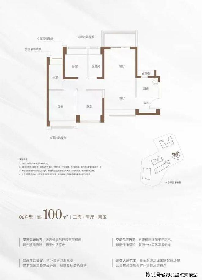 【质感的人居-六维社区】主力建面约95-124㎡三至四房,精工匠造悦居体系。