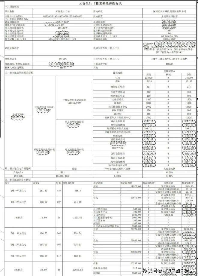 再来看一下天安云谷首推1-2栋他的这期规划,容积率6.32,规划982户,停车位1500个,四梯五户,已经两梯两户设计,总层高45-51层,楼间距20-50米左右,整体算是偏拥挤,所以说这个数据作为豪宅价卖确实有点草率了