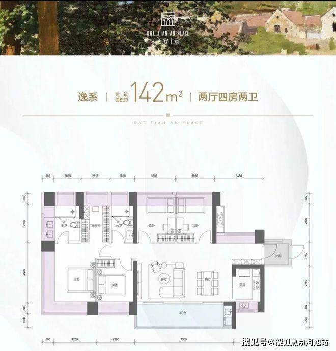 规划住宅1420套,其中套内建面<90㎡的占比约53.8%。
