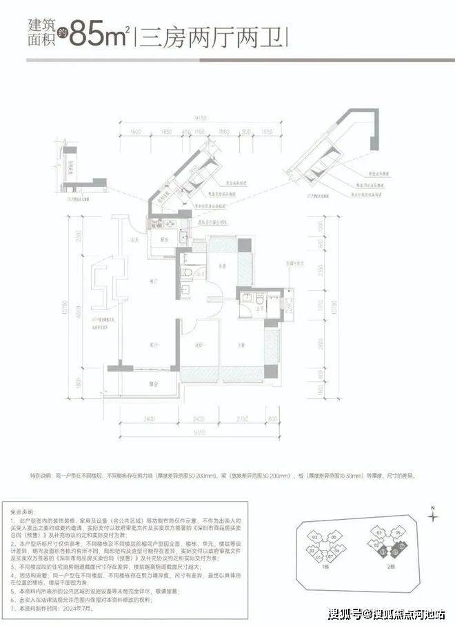 建面约85㎡三房两厅两卫