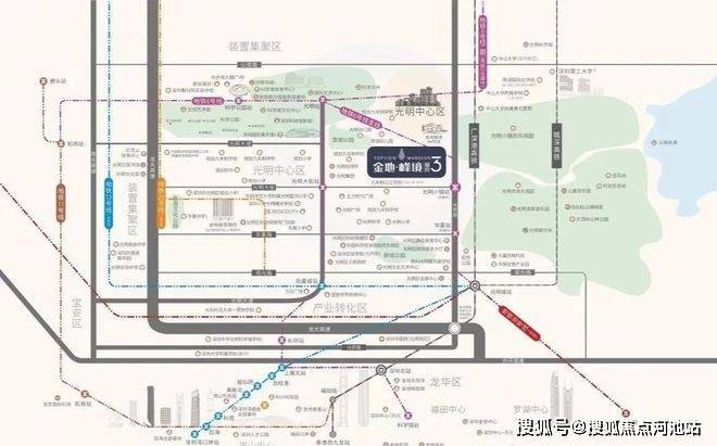 金地峰境誉府,位于光明区凤凰街道光侨路与光明大街交汇处北侧约400米,项目所处地段属于未来光明CBD与核心居住区、光明核心生态区三芯交汇处。