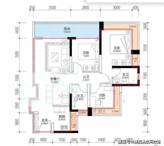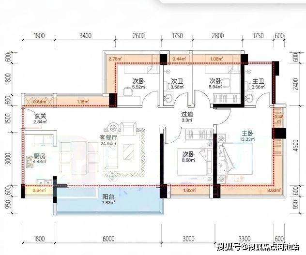建面约95㎡3房2卫