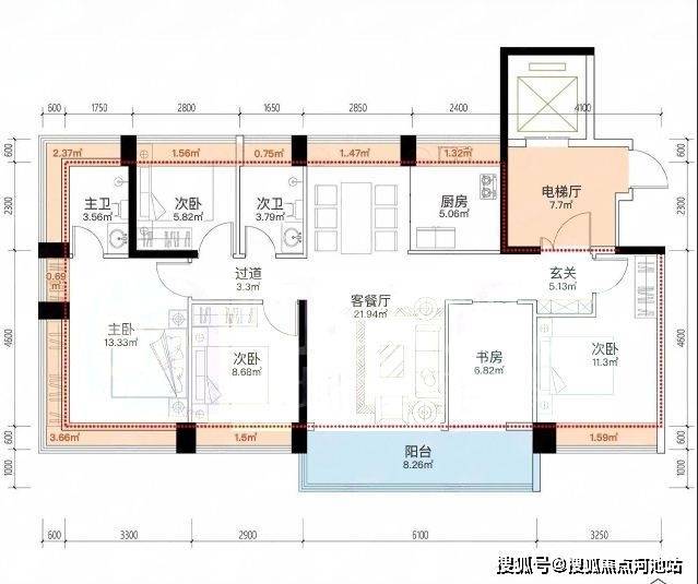 建面约113㎡4房2卫
