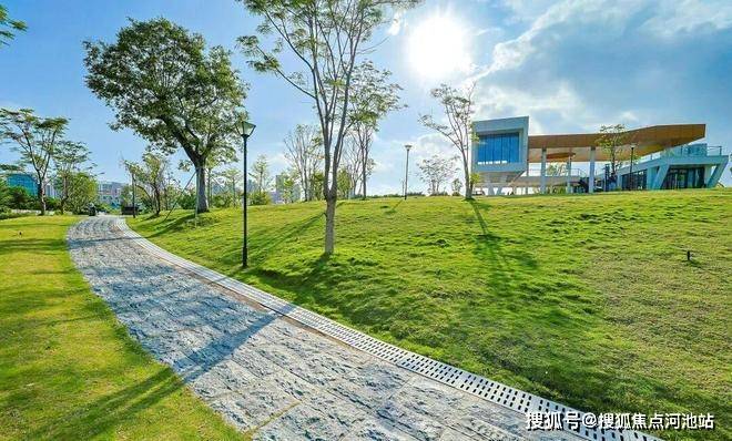 定岗湖公园占地面积约9.5万㎡,2023年荣获“最受市民欢迎奖”,公园包括水域、湿地、亲水平台、音乐喷泉、廊桥、儿童活动场地、足球场等,为周边市民提供了多样的公共活动空间。