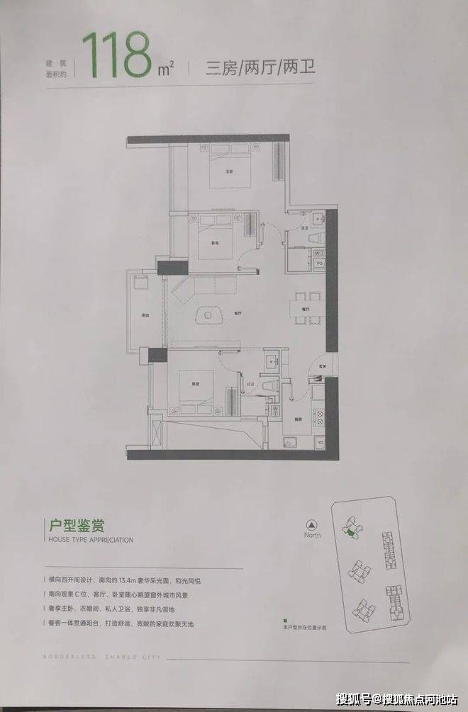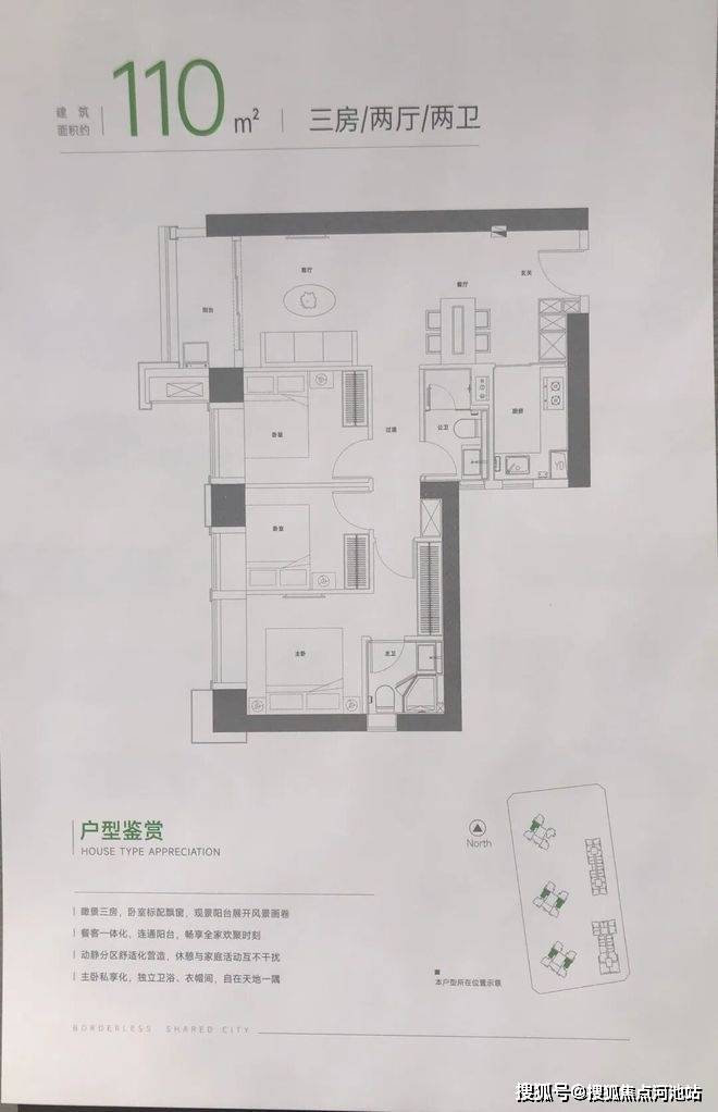 :卧室标配飘窗,观景阳台延伸视野;餐客一体化连通阳台,全家欢聚更从容;动静分区设计,休憩、活动互不干扰;主卧带独立卫浴与衣帽间,私享静谧天地。