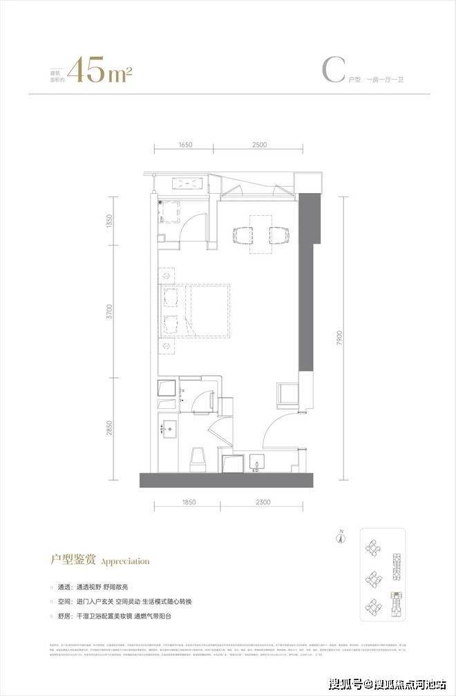 C 户型:卧室全配飘窗,餐客连阳台,双阳台实用便捷
