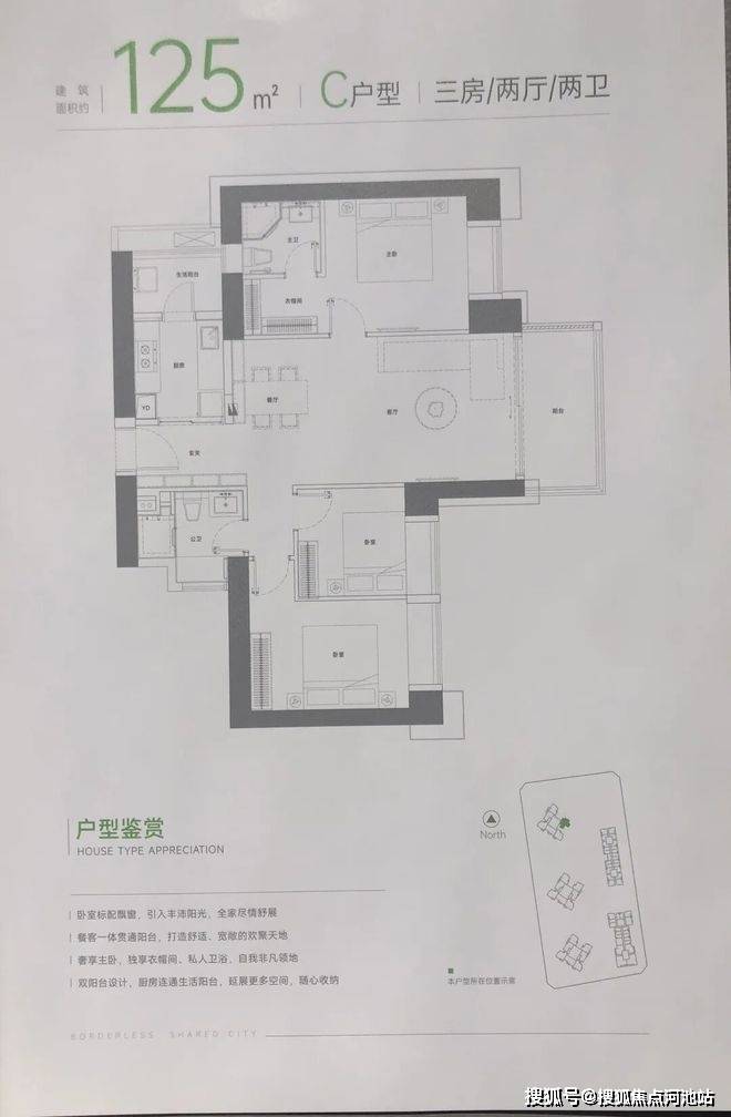 建面约 125㎡A 户型瞰景三房二厅二卫