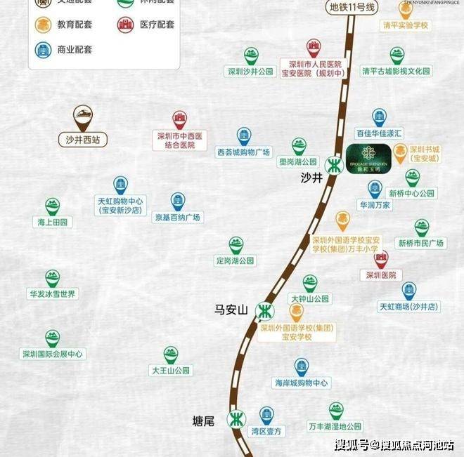 轨道交通:距离11号线“沙井站”直线约350米,步行550米,8-10分钟,6站直达宝安机场,8站宝中,9站前海