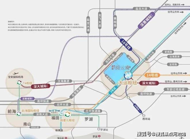 交通配套:深铁阅云境广场交通配套以"四线交汇"为核心优势,打造深圳东部最便捷的TOD交通网络8920。项目位于大运枢纽站上盖,该枢纽是深圳东部最大的综合交通枢纽,集地铁3号线、14号线、16号线和深大城际(33号线)四线于一体,实现站内无缝换乘321。地铁3号线可直达罗湖(6站)、福田岗厦北(8站);14号线可快速到达福田中心区;16号线连接龙岗与坪山;深大城际预计2026年11月开通,可直达宝安T4枢纽(7站)和惠州大亚湾(需换乘)。