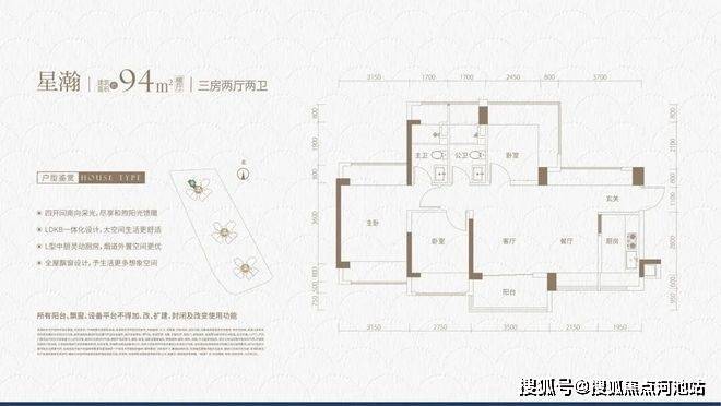 更难得的是,LDK 餐客厨一体化设计 + 主卧,全做到了南北通透,全屋采光几乎没有任何盲区,通风效果直接拉满。预算够的老友,这个户型确实是首推首选。
