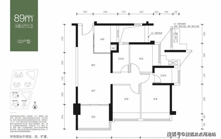 89㎡3房2卫:总价487-551万