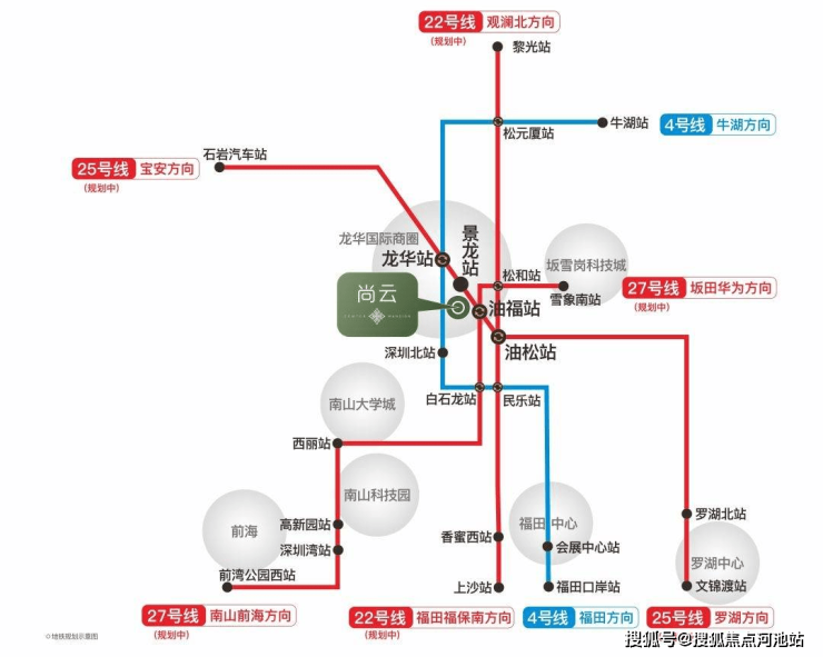 4号线(已开通):龙华站直线距离约1000m,深圳纵向城市交通中轴。