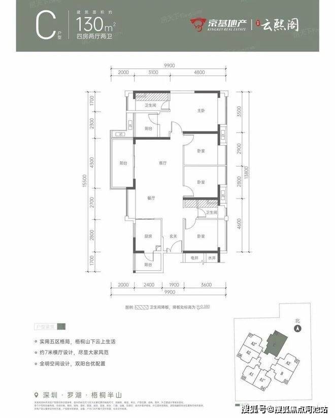 2)山景王炸户型:备案使用率约80%,全明空间通风采光俱佳,阔绰阳台,奢享梧桐阔绰风光。