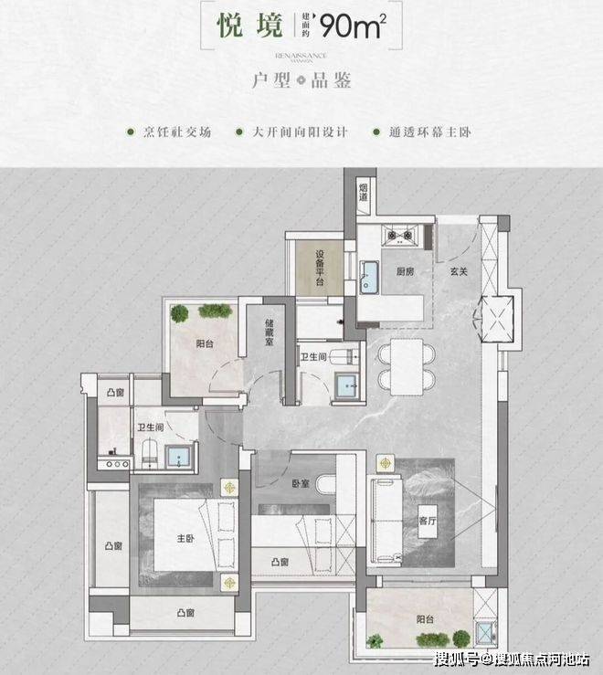【建筑面积90㎡3房2卫】