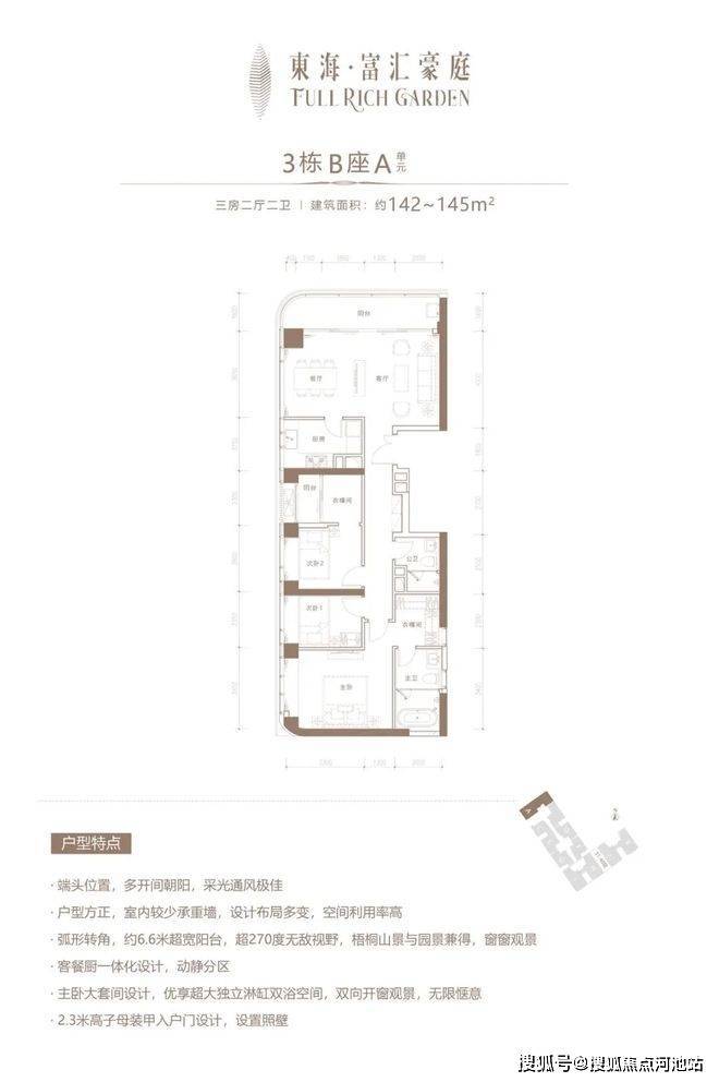 大部分户型设置约6米长超大尺度开间阳台、三面采光。约118㎡以上的大部分户型拥有三面采光,超270°景观视野。