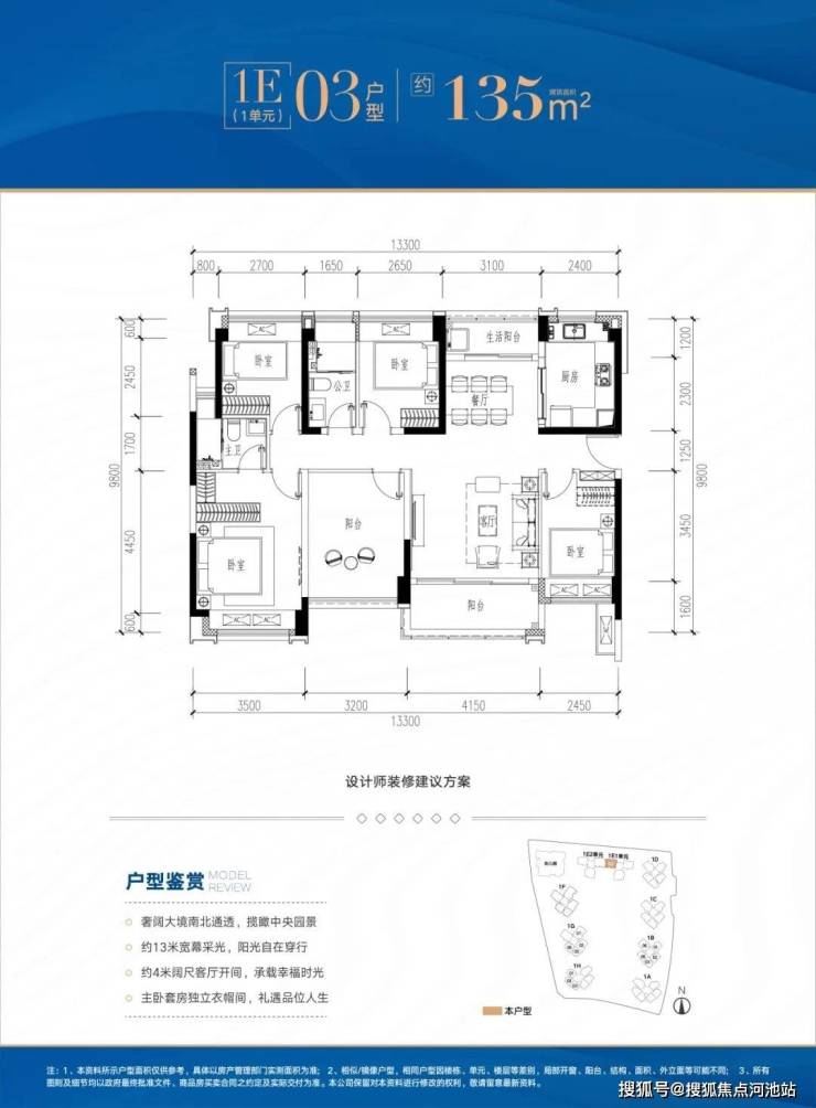 此外,约135㎡稀缺央景大五房,四开间朝南,将约2万㎡园林景观尽收眼底,双阳台与方正户型设计,让大宅生活的尊崇与舒适淋漓展现。
