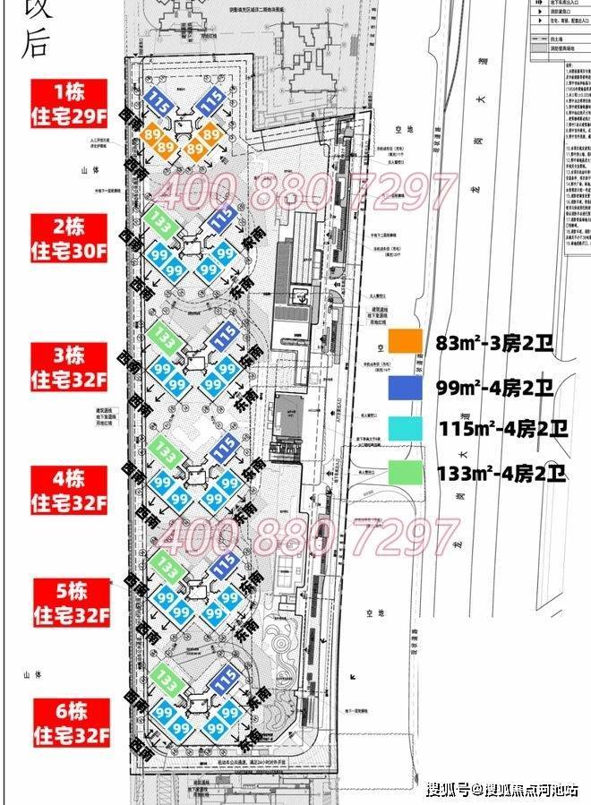 乐城3期(乐宸)是新规住宅,推出的户型得房率得到很多提升,高达100%,其中83㎡做到了3房2卫,99㎡做4房2卫。另外乐城3期都是非超高层(只有29-32层),所有单元每层楼均为3梯6户,户型朝向错开设计,确保每一户都是全南向户型,采光充足。在装修方面,也进行了全面升级。