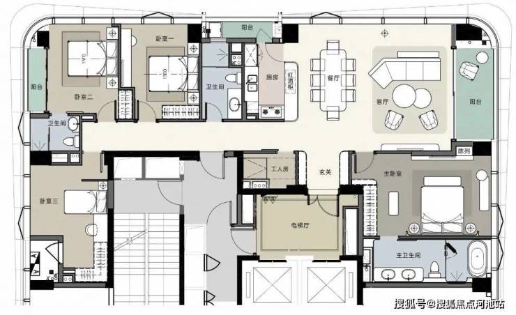 【 233户型 】4+1房2厅3卫 2梯2户
